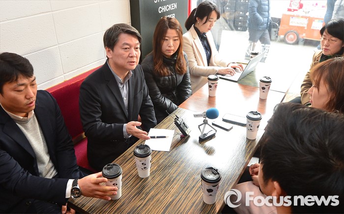 (서울=포커스뉴스) 안철수 국민의당 상임공동대표가 2일 오후 서울 여의도의 한 음식점에서 직장인들과 대화를 나누고 있다.