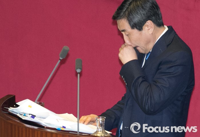 (서울=포커스뉴스) 테러방지법 직권상정에 반발해 야당이 세계 최장 기록의 필리버스터(무제한 토론)를 이어가고 있는 2일 오후 서울 여의도 국회 본회의장에서 토론에 참여한 이종걸 더불어민주당 원내대표가 이석현 국회 부의장의 발언동안 몸을 풀고 있다. 야당은 이날 필리버스터를 중단하고 선거법 등을 처리할 예정이다.