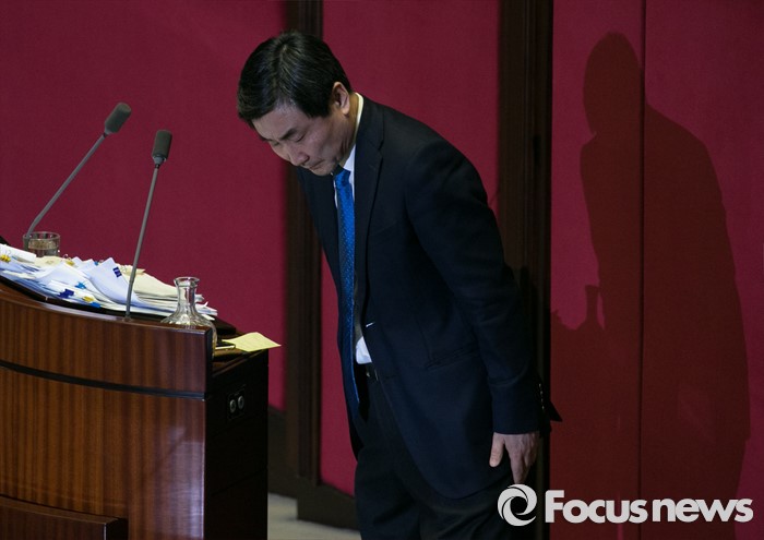 (서울=포커스뉴스) 테러방지법 직권상정에 반발해 야당이 세계 최장 기록의 필리버스터(무제한 토론)를 진행한 2일 오후 서울 여의도 국회 본회의장에서 마지막 주자인 이종걸 더불어민주당 원내대표가 토론을 마친 뒤 인사하고 있다. 마지막 주자로 나선 이 원내대표는 이날 정청래 의원의 기록인 11시간 40분을 경신한 12시간 31분을 기록하며 토론을 마쳤으며, 야당의 필리버스터는 약 193시간만에 종료됐다.