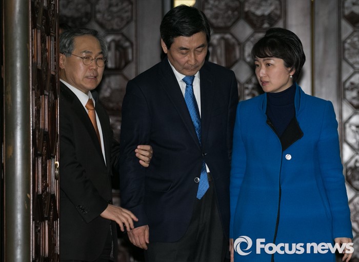 (서울=포커스뉴스) 테러방지법 직권상정에 반발해 야당이 세계 최장 기록의 필리버스터(무제한 토론)를 진행한 2일 오후 서울 여의도 국회에서 마지막 주자로 나섰던 이종걸(가운데) 더불어민주당 원내대표가 우윤근(왼쪽), 이언주 의원의 부축을 받으며 이동하고 있다. 마지막 주자로 나선 이 원내대표는 이날 정청래 의원의 기록인 11시간 40분을 경신한 12시간 31분을 기록하며 토론을 마쳤으며, 야당의 필리버스터는 약 193시간만에 종료됐다.