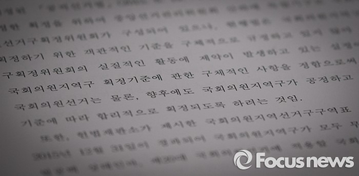 (서울=포커스뉴스) 2일 오후 서울 여의도 국회에서 열린 법제사법위원회 전체회의에 공직선거법 개정안 자료가 보이고 있다. 이날 법사위는 20대 총선 선거구 획정안을 담은 공직선거법 개정안 등을 의결했다.