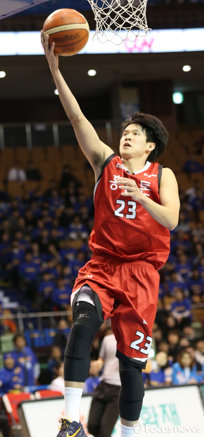 (서울=포커스뉴스) 2일 서울 잠실실내체육관에서 열린 2015-2016 프로농구 삼성-KGC 6강플레이오프 4차전에서 KGC 전성현이 레이업슛을 시도하고 있다.
