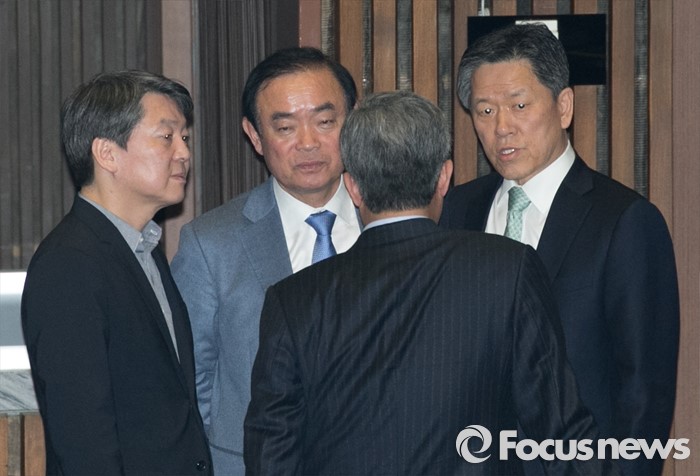 (서울=포커스뉴스) 2일 오후 서울 여의도 국회에서 열린 340회 국회(임시회) 7차 본회의에 참석한 안철수(왼쪽부터) 국민의당 상임공동대표, 장병완 정책위의장, 유성엽 의원, 주승용 원내대표가 대화하고 있다.