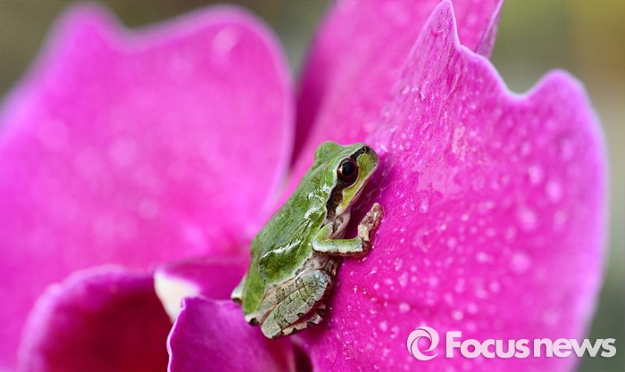 (청주=포커스뉴스) 경칩을 앞둔 3일 오전 충북 청주시 오창읍 충북농업기술원 화훼온실에서 청개구리가 겨울잠에서 깨어나 모습을 보이고 있다.