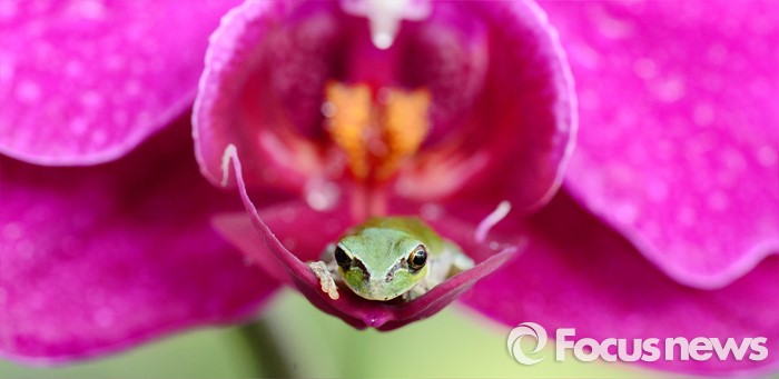 (청주=포커스뉴스) 경칩을 앞둔 3일 오전 충북 청주시 오창읍 충북농업기술원 화훼온실에서 청개구리가 겨울잠에서 깨어나 모습을 보이고 있다.