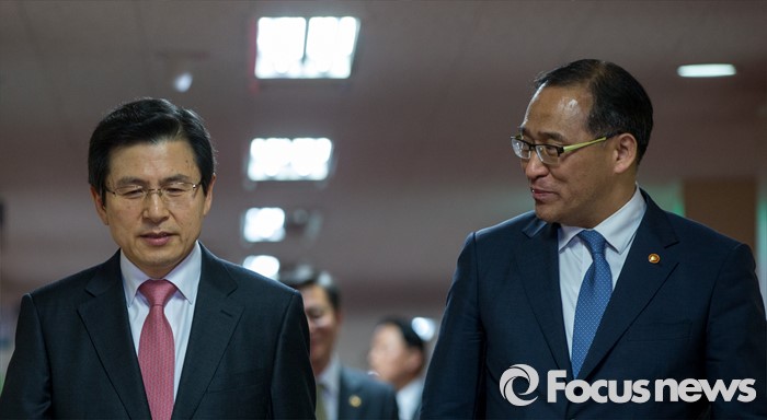 (서울=포커스뉴스) 황교안 국무총리와 홍윤식 행정자치부 장관이 3일 오전 서울 종로구 정부서울청사에서 열린 '국무회의'에 자리하기 위해 회의실로 들어서고 있다.