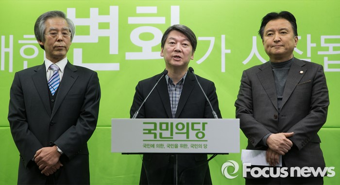 (서울=포커스뉴스) 안철수 국민의당 상임공동대표가 3일 오전 서울 마포구 국민의당 당사에서 장순식 박사, 원자력안전특위 위원장 위촉을 발표하고 있다. 왼쪽부터 장 박사, 안 대표, 김영환 공동선대위원장
