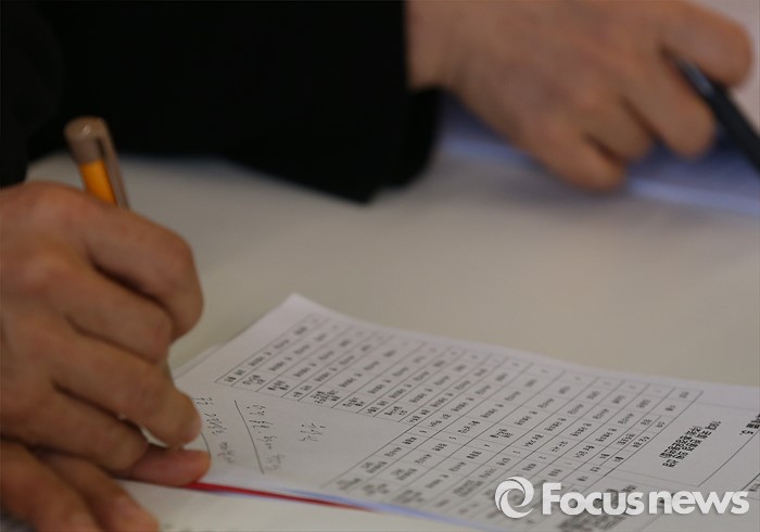 (서울=포커스뉴스) 3일 오전 서울 참여연대 아름드리홀에서 열린 '2016 총선시민네트워크 1차 공천부적격자 발표 기자회견'에 참석한 한 운영위원이 공천부적격자 명단위에 메모를 하고 있다.