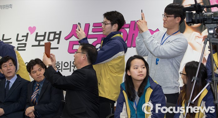 (과천=포커스뉴스) 3일 오후 경기도 과천시 중앙선거관리위원회에서 열린 '아름다운 선거 홍보대사 위촉식'에서 직원들이 참석한 그룹 AOA의 가수 설현을 스마트폰으로 촬영하고 있다.