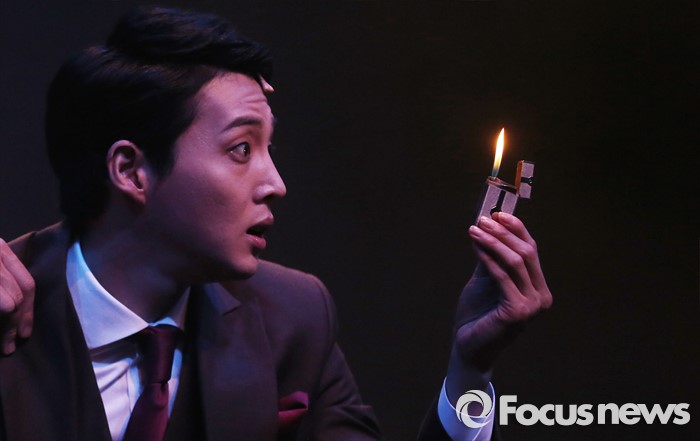 (서울=포커스뉴스) 3일 오후 서울 종로구 대명문화공장에서 열린 뮤지컬 '쓰릴 미' 프레스콜 행사에 참석한 배우 강동호가 주요장면을 시연하고 있다.
