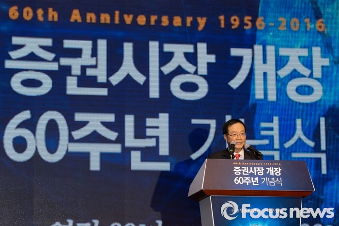 (서울=포커스뉴스) 최경수 한국거래소 이사장이 3일 오후 서울 영등포구 63빌딩에서 열린 증권시장 개장 60주년 기념식에서 기념사를 하고 있다. 이번 행사는 지난 1956년 3월 3일 대한증권거래소의 출범과 함께 문을 연 한국 증시의 60년 발자취를 기념하기 위해 마련됐다.