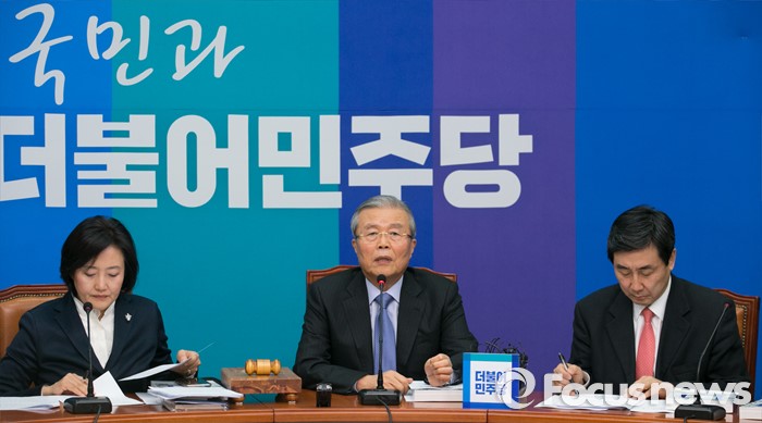 (서울=포커스뉴스) 김종인(가운데) 더불어민주당 비대위 대표가 4일 오전 서울 여의도 국회에서 열린 비대위-선대위 연석회의에 참석해 모두발언을 하고 있다.