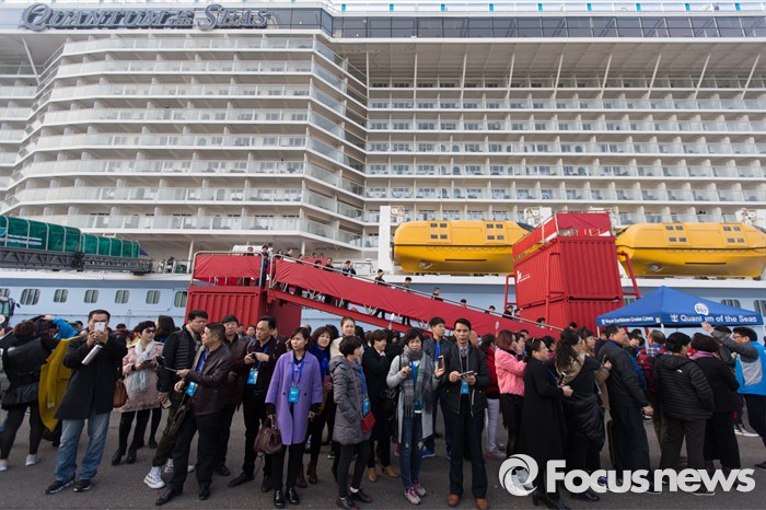 (인천=포커스뉴스) 4일 오전 인천 연수구 송도신항에 정박해 있는 아시아 최대 크루즈인 '퀀텀 오브 더 시즈'호에서 관광객들이 내리고 있다.