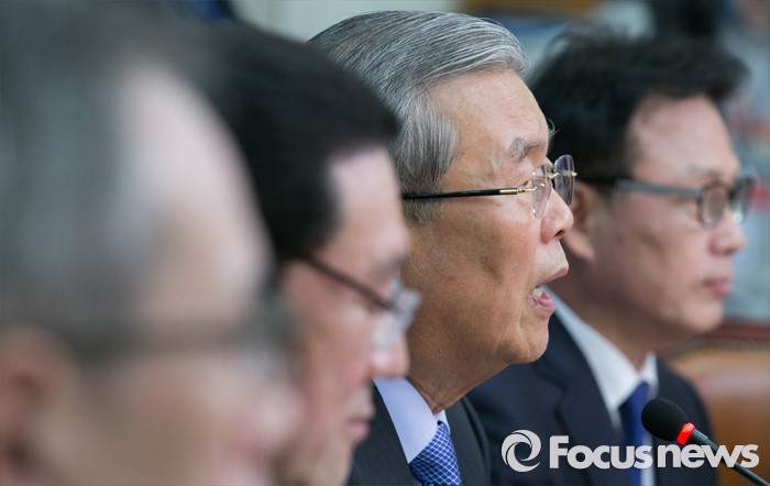 (서울=포커스뉴스) 김종인(오른쪽 두번째) 더불어민주당 비대위 대표가 4일 오전 서울 여의도 국회에서 열린 '국민연금 혜택, 국민께 더 돌려드리겠습니다 - 정책공약단 공약발표'에 참석해 인사말을 하고 있다.