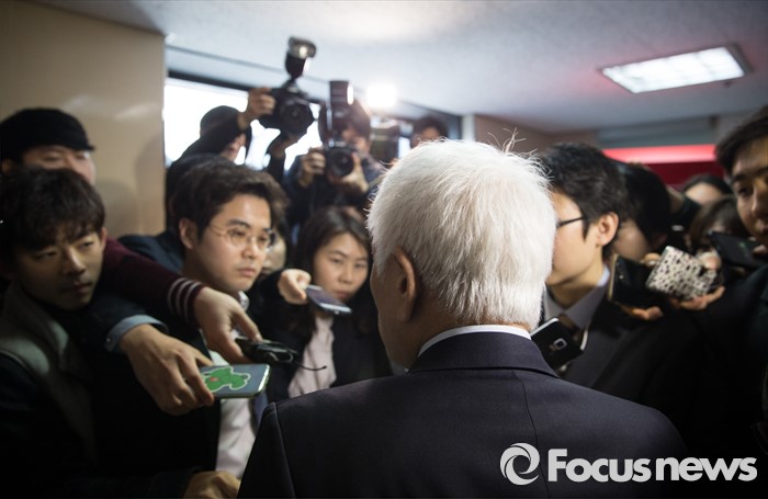 (서울=포커스뉴스) 선거대책 회의를 마친 김한길 국민의당 선대위원장이 4일 오전 서울 마포구 국민의당 당사에서 기자들의 질문을 받으며 당사를 빠져나고오 있다.