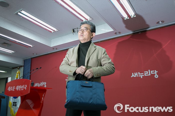 (서울=포커스뉴스) 이한구 새누리당 공천관리위원장이 4일 오전 서울 여의도 새누리 당사에서 당내 지역 예비후보 여론조사 문건 유출과 관련, 브리핑을 마친 뒤, 단상을 내려가고 있다.
