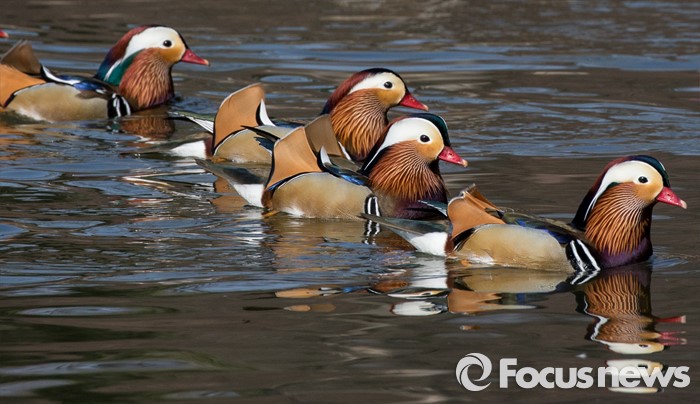 (서울=포커스뉴스) 동면하던 동물이 땅속에서 깨어난다는 경칩을 하루 앞둔 4일 오전 서울 종로구 창경궁 춘당지에서 원앙들이따스한 봄볕을 쐬고 있다.