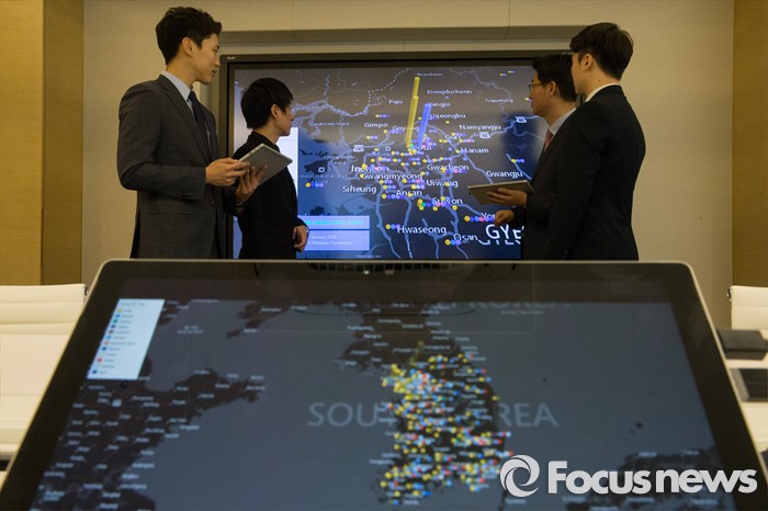 (서울=포커스뉴스) 4일 오전 서울 종로구 한국마이크로소프트에서 열린 '사이버보안센터 개관식'에서 직원들을 비롯한 관계자들이 MALWARE(악성코드) 분포도를 확인하고 있다.