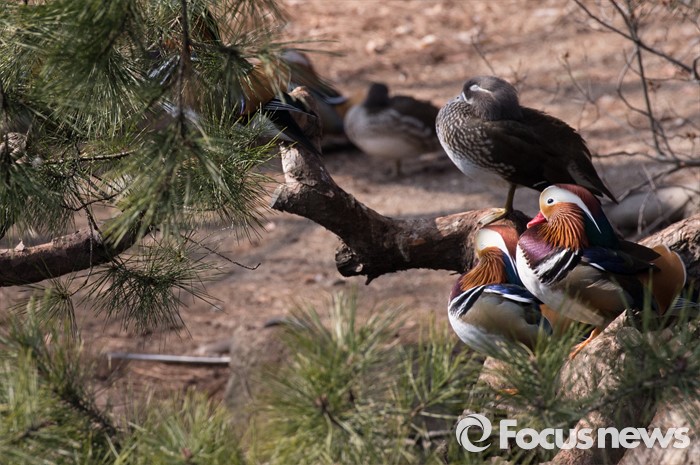 (서울=포커스뉴스) 동면하던 동물이 땅속에서 깨어난다는 경칩을 하루 앞둔 4일 오전 서울 종로구 창경궁 춘당지에서 원앙들이따스한 봄볕을 쐬고 있다.
