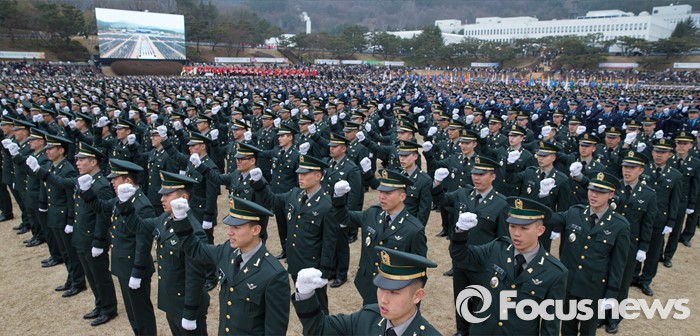 (계룡=포커스뉴스) 4일 오전 충남 계룡대 연병장에서 열린 2016년 장교 합동임관식 리허설에서 신임장교들이 파이팅을 하고 있다.