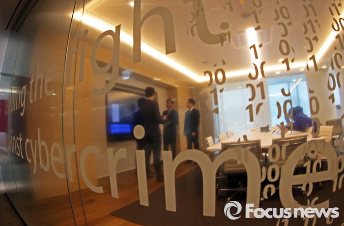 (서울=포커스뉴스) 한국마이크로소프트 사이버보안센터 오픈식이 열린 4일 오전 서울 종로구 더케이트원타워에서 관계자들이 악성코드 분포도를 확인하고 있다.