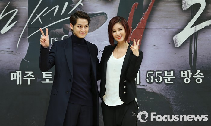 (서울=포커스뉴스) 4일 오후 서울 양천구 SBS 목동사옥에서 열린 SBS 특별기획 '미세스 캅2' 제작발표회에 참석한 배우 김범(왼쪽)과 김성령이 포토타임을 갖고 있다.