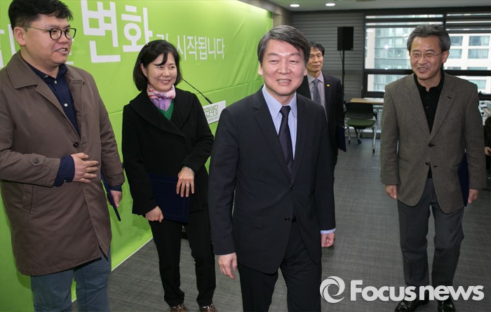 (서울=포커스뉴스) 안철수(왼쪽 세번째) 국민의당 상임공동대표가 4일 오후 서울 마포구 당사에서 선거관리위원장 및 위원 위촉장 수여식을 마친 뒤 위원장으로 위촉된 김종현(오른쪽 첫번째) 동아대학교 전임교수 등 위원들과 함께 퇴장하고 있다.