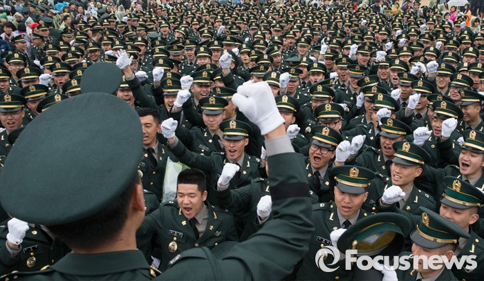 (계룡=포커스뉴스) 4일 오후 충남 계룡대 연병장에서 열린 2016년 장교 합동임관식에서 신임장교들이 임관식을 마치고 구호를 외치고 있다.