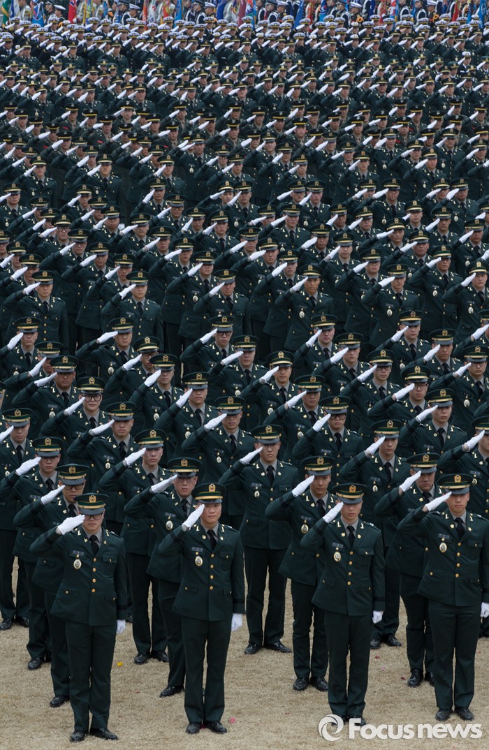 (계룡=포커스뉴스) 4일 오후 충남 계룡대 연병장에서 열린 2016년 장교 합동임관식에서 신임장교들이 거수경례를 하고 있다.