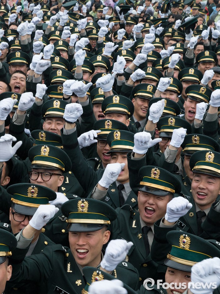 (계룡=포커스뉴스) 4일 오후 충남 계룡대 연병장에서 열린 2016년 장교 합동임관식에서 신임장교들이 임관식을 마치고 구호를 외치고 있다.