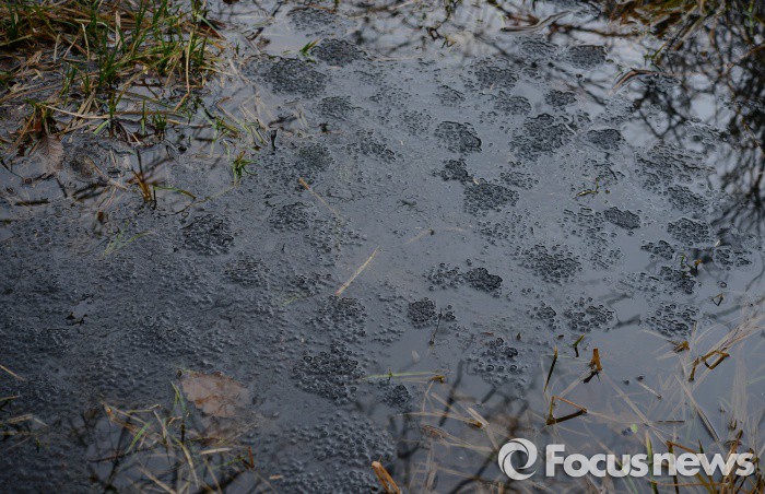 (영암=포커스뉴스) 전국적으로 봄비가 내리고 절기상경칩인 5일 전남 영암군 영암읍 월출산 자락에 겨울잠에서 깨어난 산개구리들이 산란한 알이 물웅덩이를 뒤덥고 있다. <사진제공=김현태 양서류연구가>