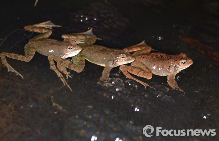 (영암=포커스뉴스) 전국적으로 봄비가 내리고 절기상경칩인 5일 전남 영암군 영암읍 월출산 자락에 겨울잠에서 깨어난 산개구리들이 배우자를 찾고 있다. <사진제공=김현태 양서류연구가>