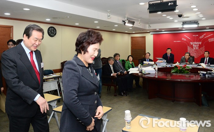(서울=포커스뉴스) 6일 오전 서울 여의도 새누리당사에서 실시된 공천면접에 참석한 김무성 대표가 당당하게 면접장으로 입장하고 있다.