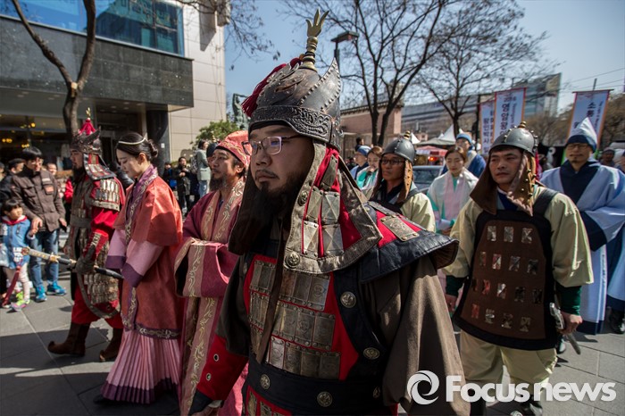 (서울=포커스뉴스) 6일 오후 서울 종로구 인사동에서 '2016 영암왕인문화축제'를 알리기 위한 '왕인박사 일본가오' 퍼레이드가 펼쳐지고 있다.