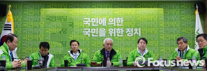 (서울=포커스뉴스) 7일 오전 서울 마포구 당사에서 열린 선거대책위원회의에 참석한 안철수(왼쪽 다섯번째) 국민의당 상임공동대표가 모두발언을 하고 있다.
