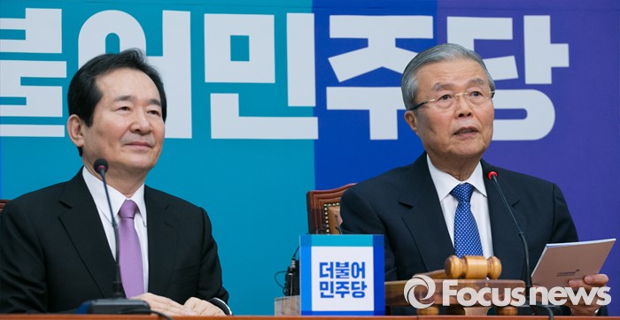 (서울=포커스뉴스) 김종인 더불어민주당 비대위 대표가 7일 오전 서울 여의도 국회에서 비상대책위원회의에 앞서 열린 더불어성장 핸드북 발간 행사에 참석해 인사말을 하고 있다. 왼쪽은 정세균 유능한경제정당위원회 공동위원장.