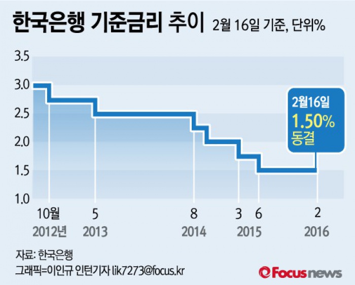 하지만 변액보험은 특별계정으로 잡히는 데다 원금 손실에 대한 부담도 적어 보험사에 유리하다. C보험사 관계자는 "변액보험은 원금보장을 할 필요가 없다. 또 단적으로 투자수익률이 낮더라도 이는 회사가 도덕적 비판만 받지 경영상 문제는 없어 변액보험 상품 출시가 줄을 이을 것"이라고 말했다.(서울=포커스뉴스) 한국은행 금융통화위원회(금통위)는 16일 정례회의를 열고 2월 기준금리를 연 1.50%로 동결하기로 결정했다.지난해 6월 0.25% 포인트 인하된 뒤 8개월째 같은 수준이다. 2016.02.16 이인규 인턴기자