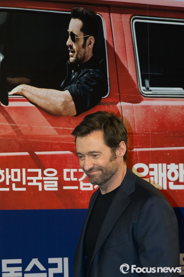 (서울=포커스뉴스) 7일 오전 서울 종로구 포시즌스 호텔 서울에서 열린 영화 '독수리 에디' 기자간담회에 배우 휴잭맨이 참석해 미소짓고 있다.