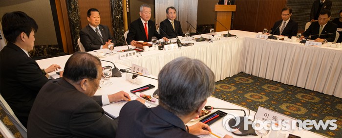 (서울=포커스뉴스) 7일 서울 중구 롯데호텔앤리조트 서울에서 열린 '대한체육회(통합체육회) 발기인 대회'에서 안양옥 체육단체 통합준비위원장을 비롯한 참석자들이 이동현 통합준비위원회 위원의 발언을 듣고 있다.