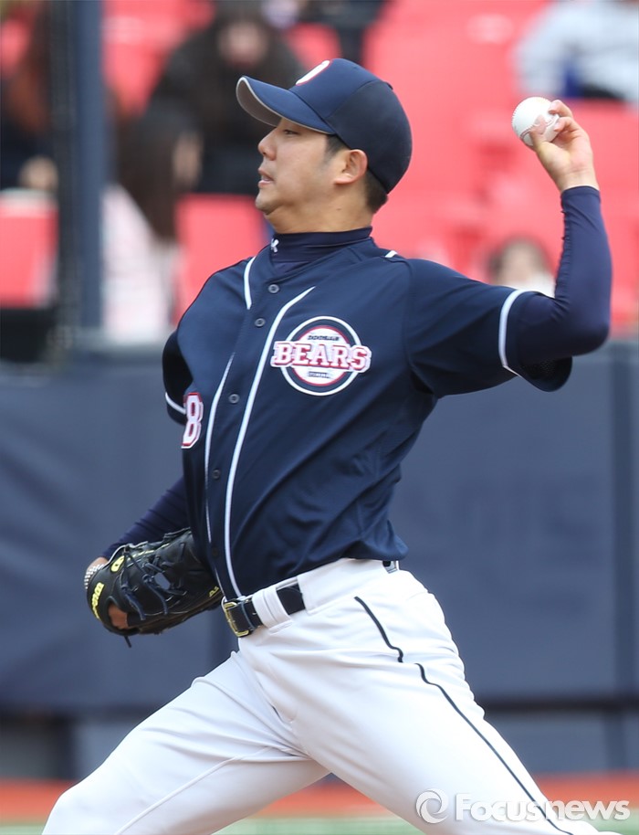 (수원=포커스뉴스) 8일 수원 kt위즈파크에서 열린 2016 KBO리그 시범경기 두산-kt 경기에서 두산 장원준이 4회 두번째 투수로 등판해 투구하고 있다.