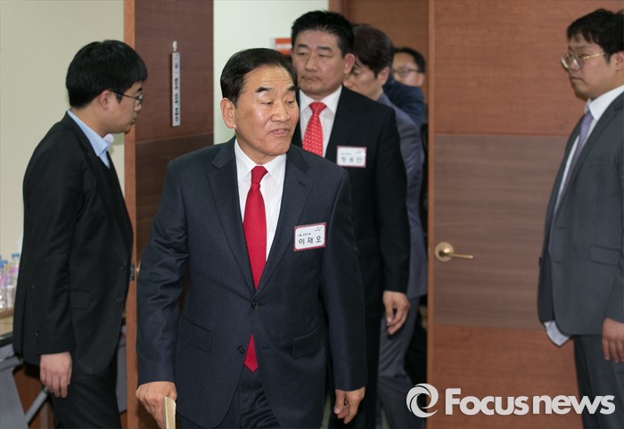 (서울=포커스뉴스) 8일 오후 서울 여의도 새누리당사에서 열린 20대 총선 분구·통합·경계조정 지역구 공천신청자 면접에 서울 은평을에 신청한 이재오 의원이 참석하며 인사하고 있다.