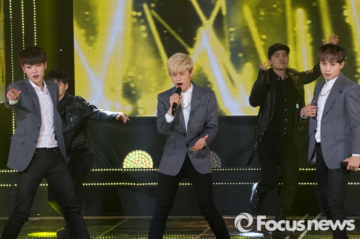 (서울=포커스뉴스) 8일 오후 서울 마포구 SBS프리즘 타워에서 열린 '2016 더쇼 62회' 생방송 촬영 현장에 아이돌그룹 APL가 무대를 선보이고 있다.