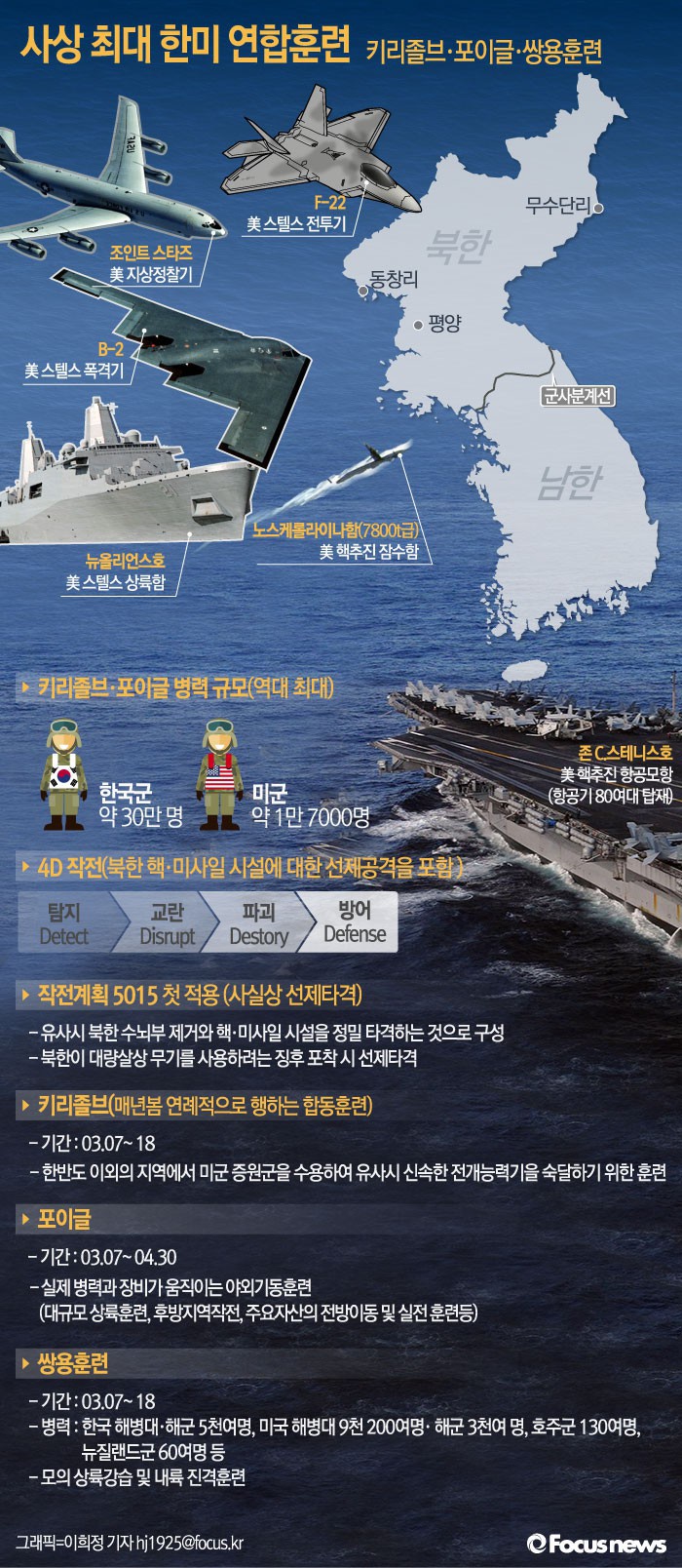 이번 대규모 한미연합훈련에 대한 내용을 포커스뉴스 그래픽을 통해 살펴보자.