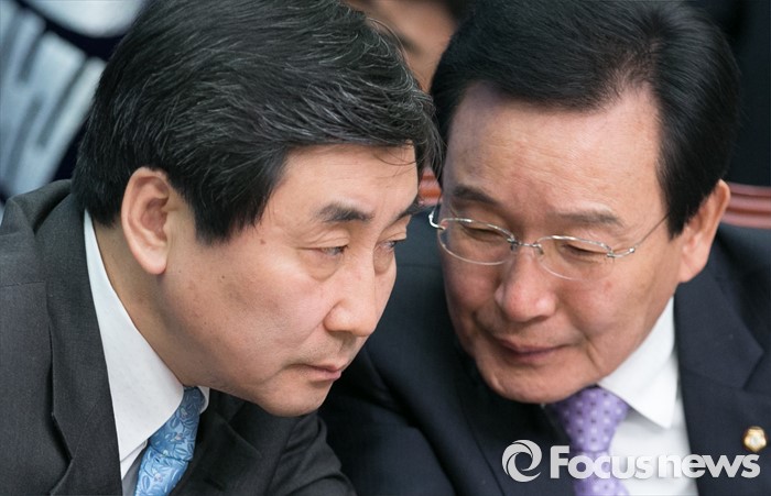 (서울=포커스뉴스) 이종걸(왼쪽) 더불어민주당 원내대표와 변재일 비대위원이 9일 오전 서울 여의도 국회에서 열린 비상대책위원회의에 참석해 대화하고 있다.