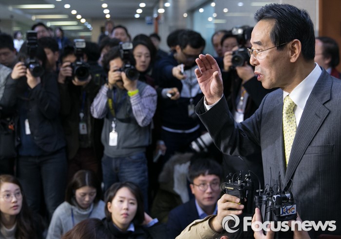 (서울=포커스뉴스) 홍창선 더불어민주당 공천관리위원장이 9일 오전 서울 여의도 국회 정론관에서 20대 총선 1차 경선지역과 관련 브리핑을 마친 뒤 취재진 질문에 답하고 있다. 홍 위원장은 이날 브리핑 중 취재관행을 바꾸기 위한 언론인과 대화를 하던 중 일부 항의를 받았다.