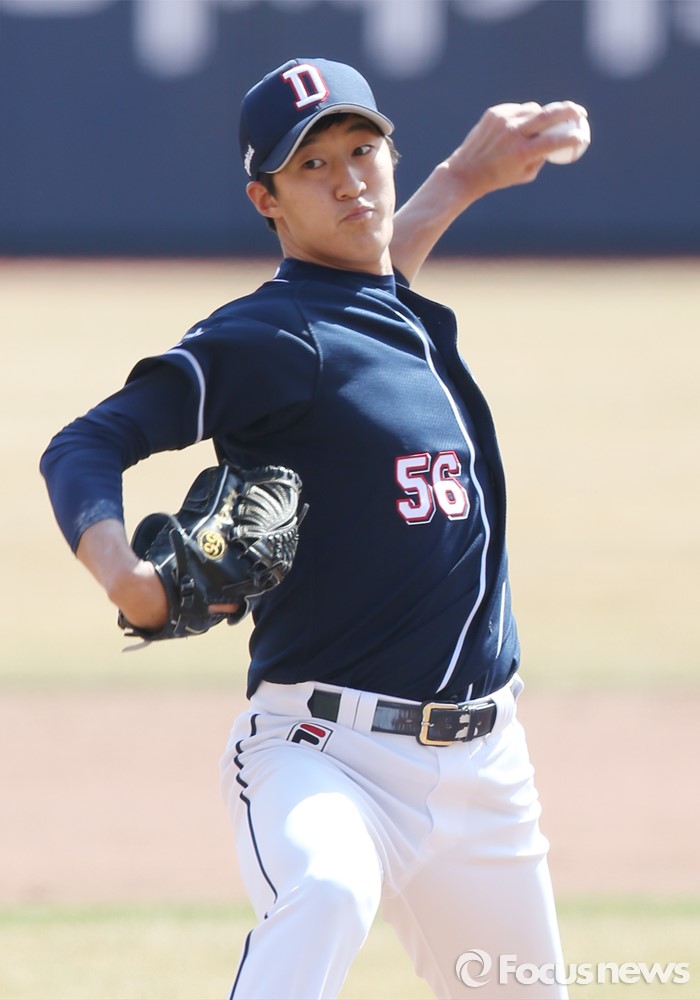 (수원=포커스뉴스) 9일 수원 kt위즈파크에서 열린 2016 KBO리그 시범경기 두산-kt 경기에서 1회말 두산 선발 허준혁이 투구하고 있다.