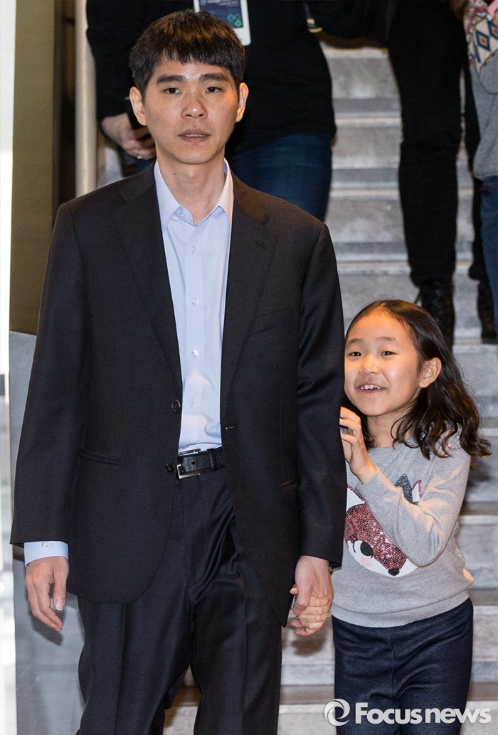 (서울=포커스뉴스) 9일 오후 서울 종로구 포시즌스 호텔에서 열린 '구글 딥마인드 챌린지 매치'에서 이세돌 9단이 딸 혜림 양과 함께 대기실로 향하고 있다.