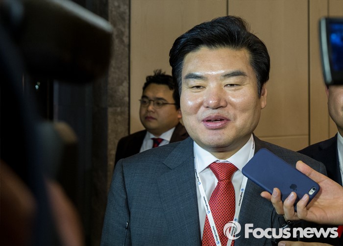 (서울=포커스뉴스) 9일 오후 서울 종로구 포시즌스 호텔에서 열린 이세돌 9단과 알파고의 '구글 딥마인드 챌린지 매치'에 참석한 원유철 새누리당 원내대표가 취재진의 질문에 답하고 있다.