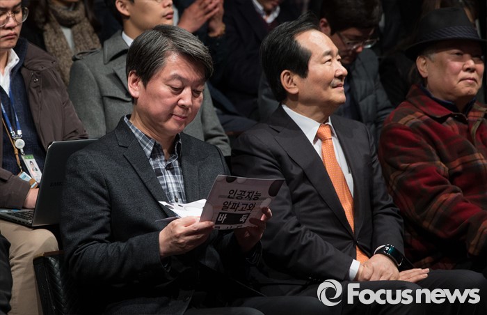 (서울=포커스뉴스) 안철수 국민의당 상임공동대표와 정세균 더불어민주당 의원이 9일 오후 서울 종로구 아름다운 극장에서 열린 인공지능과 바둑 심포지움 콘서트(이세돌-알파고 바둑 대국 관람)에 참석하고 있다.