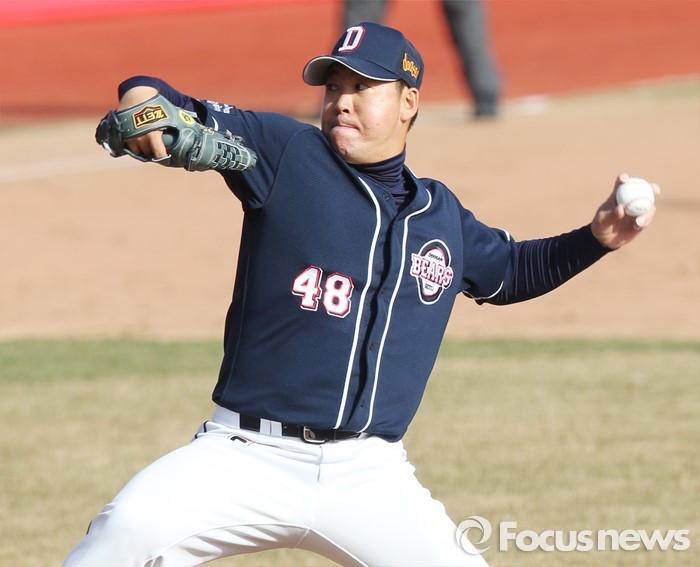 (수원=포커스뉴스) 9일 수원 kt위즈파크에서 열린 2016 KBO리그 시범경기 두산-kt 경기에서 9회말 두산 마무리 이현승이 등판해 투구하고 있다.